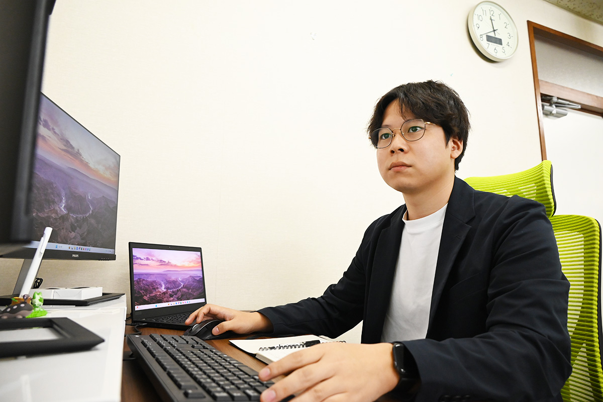 試しにYKのWEBサイトを見てみると、事業内容が自身の軸と噛み合った感じがして、とても惹かれました。データを活用したサービスを提供している点に共鳴しましたし、何より中小企業を支えるという指針が魅力的でした。
